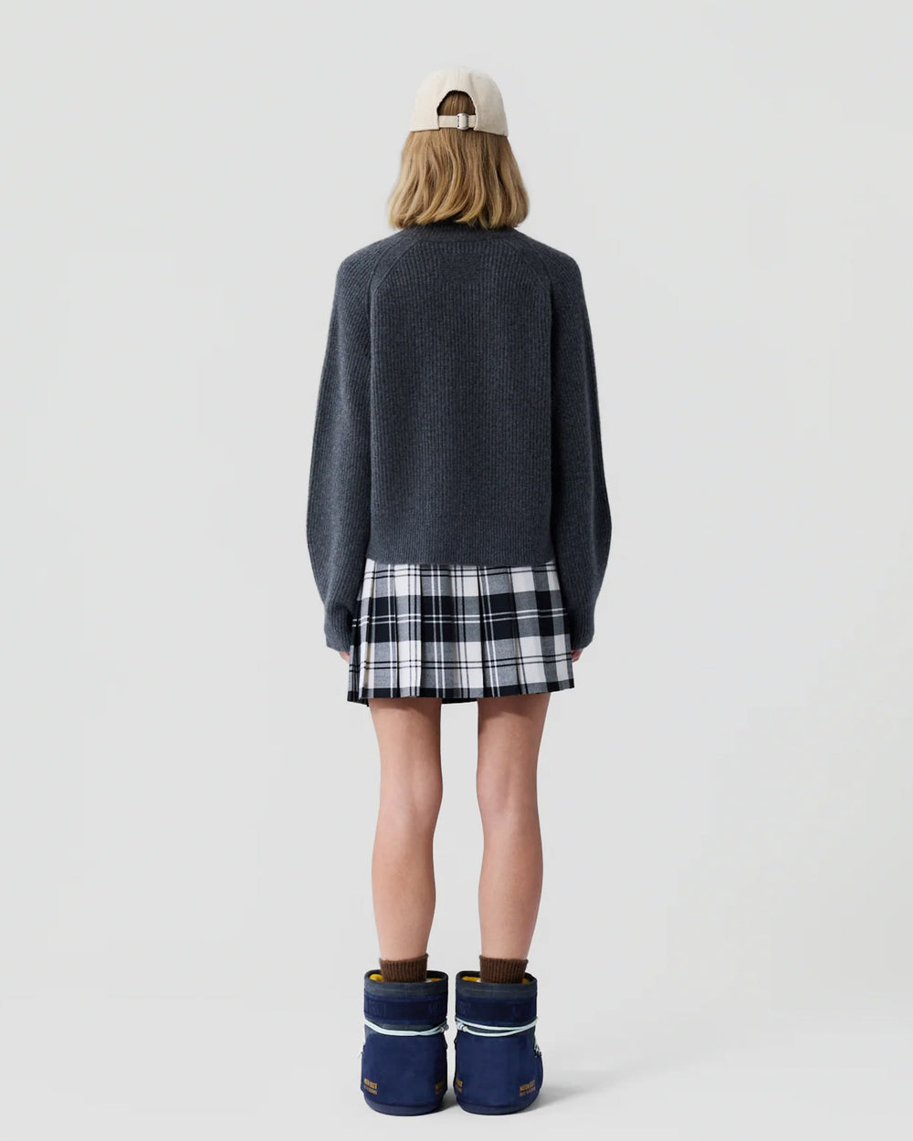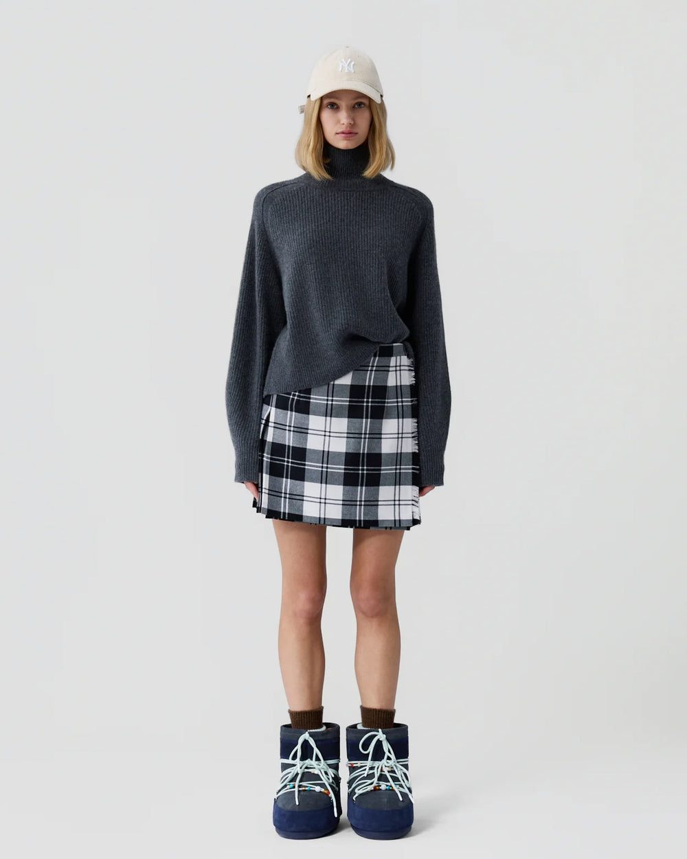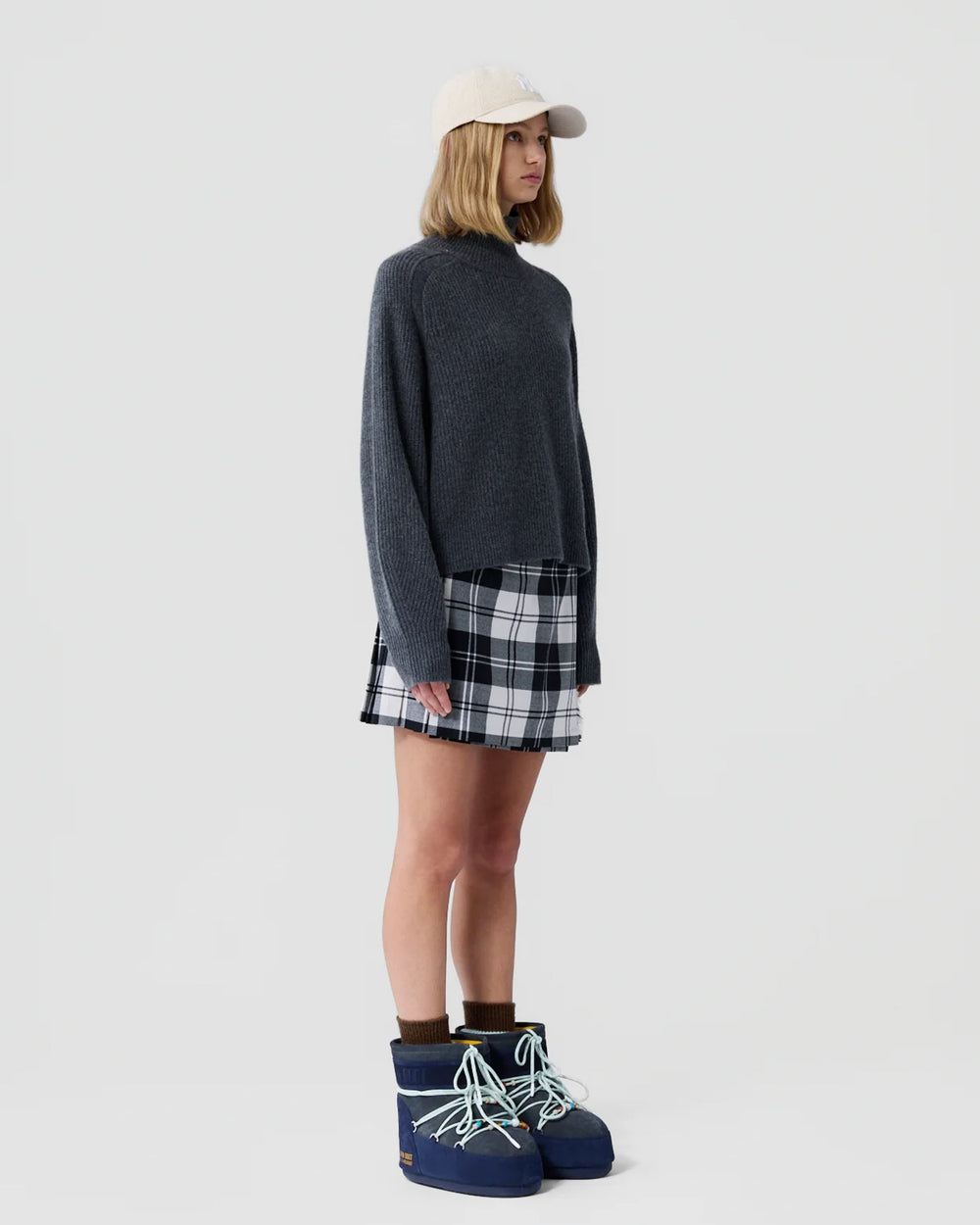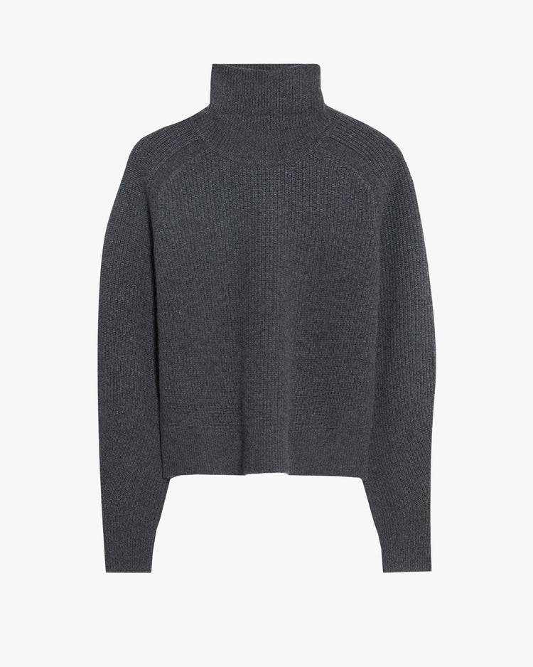 The Cropped Rib Turtleneck is a women’s 100% cashmere sweater with a modern cropped fit and ribbed texture. This cashmere turtleneck sweater is perfect for layering under jackets or pairing with high-waisted pants for colder days and cozy nights.