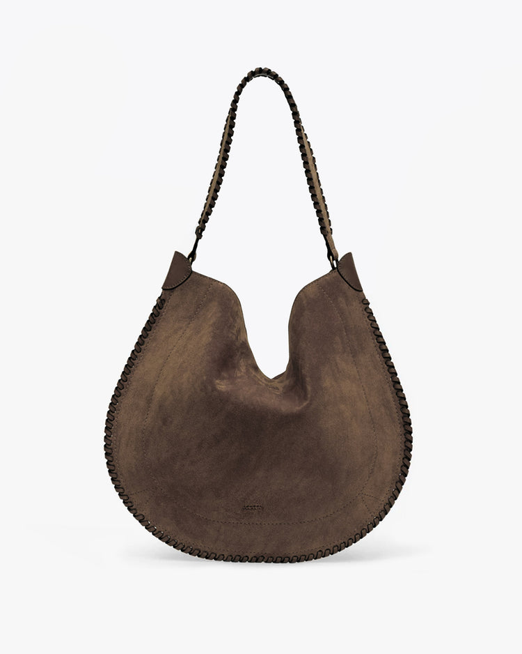 The perfect everyday bag, crafted from a soft suede leather. A hobo silhouette, featuring one main compartment, removable internal zipper pouch, decorative whip stitching around edge of bag and along the strap, removable zip pouch, and embossed Isabel Marant logos.