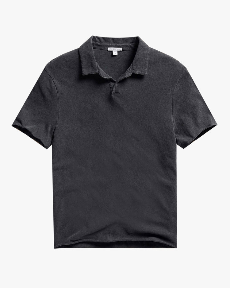 Classic fit polo, made from a soft slub Japanese jersey with a lofty gauze effect. Featuring a collar, open placket, short sleeves and a raw edge hem and sleeve.