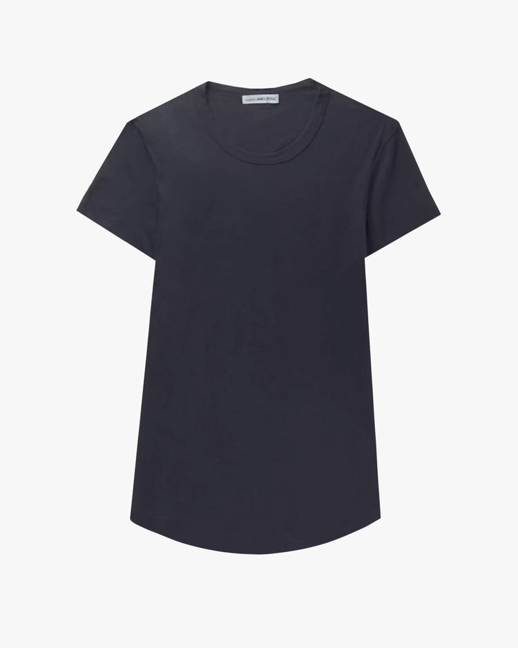 Slim fit t-shirt, cut from a cotton slub. Featuring a binded crew neckline, short sleeves, finished hems and curved bottom hem. This style uses the reverse side of the fabric for added texture and is garment dyed with extra softeners for a soft, lived-in feel.