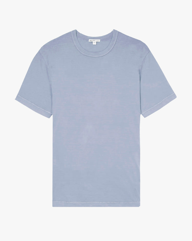 A James Perse icon - Classic fit t-shirt, cut from a soft lightweight jersey knit in colour Ocean. Featuring a crew neckline, short sleeves and straight hem. A must-have wardrobe essential and core silhouette from James Perse, pair with Workshop Denim's Linen Drawstring Shorts, or your favourite pair of blue jeans this summer.