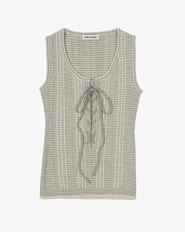 Lace-up vest knitted from a soft wool blend fabric. Featuring a deep U neckline and a adjustable tie front, allowing you style it in different ways.
