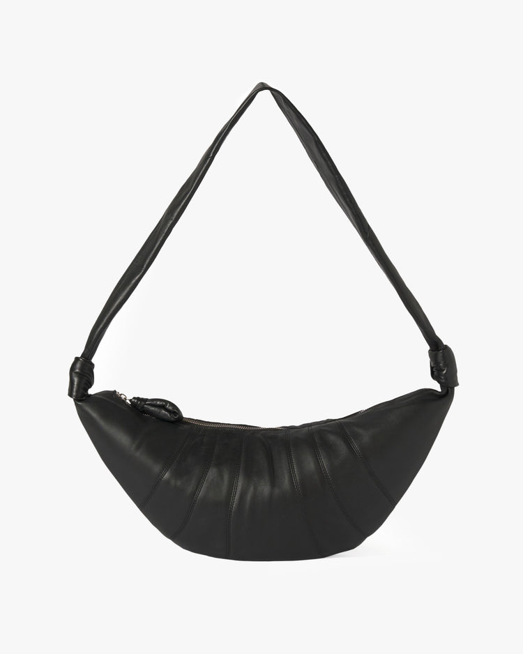 Crossbody style bag, crafted from a soft nappa leather. Inspired by the shape of a croissant, featuring a metal zipper, side knot finishing's and puffy leather pull tab. The Lemaire Croissant Bag will soften over time, allowing each bag to mold to its wearer.