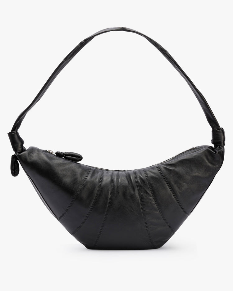 Crossbody style bag, crafted from a soft Nappa leather. Inspired by the shape of a croissant, featuring a metal zipper, side knot finishing and puffy leather pull tab. The Lemaire Croissant Bag will soften over time, allowing each bag to mold to its wearer.