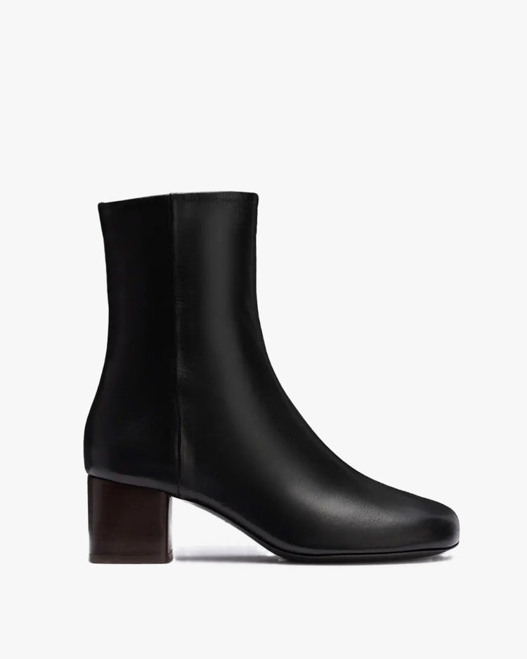 Crafted from glossy vegetable-tanned leather, the Anatomic Boots feature a soft hand, a 55mm stacked heel, and a hidden platform for added comfort. They zip on the side and showcase a signature middle stitching detail.