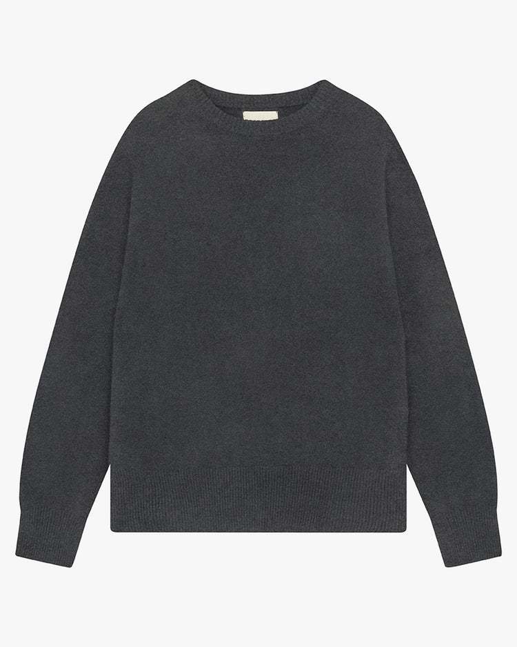 Oversized fit sweater, knitted from a soft cashmere yarn. Featuring a crew neckline, dropped shoulders and long, full sleeves split at cuffs.