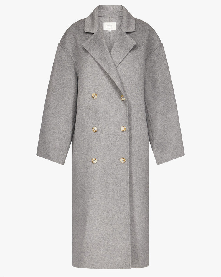 Oversized fit double-breasted coat, cut from a soft wool-cashmere. A wide silhouette, featuring a notched collar and wide sleeves. The Borneo will quickly become your most-worn piece in your wardrobe.