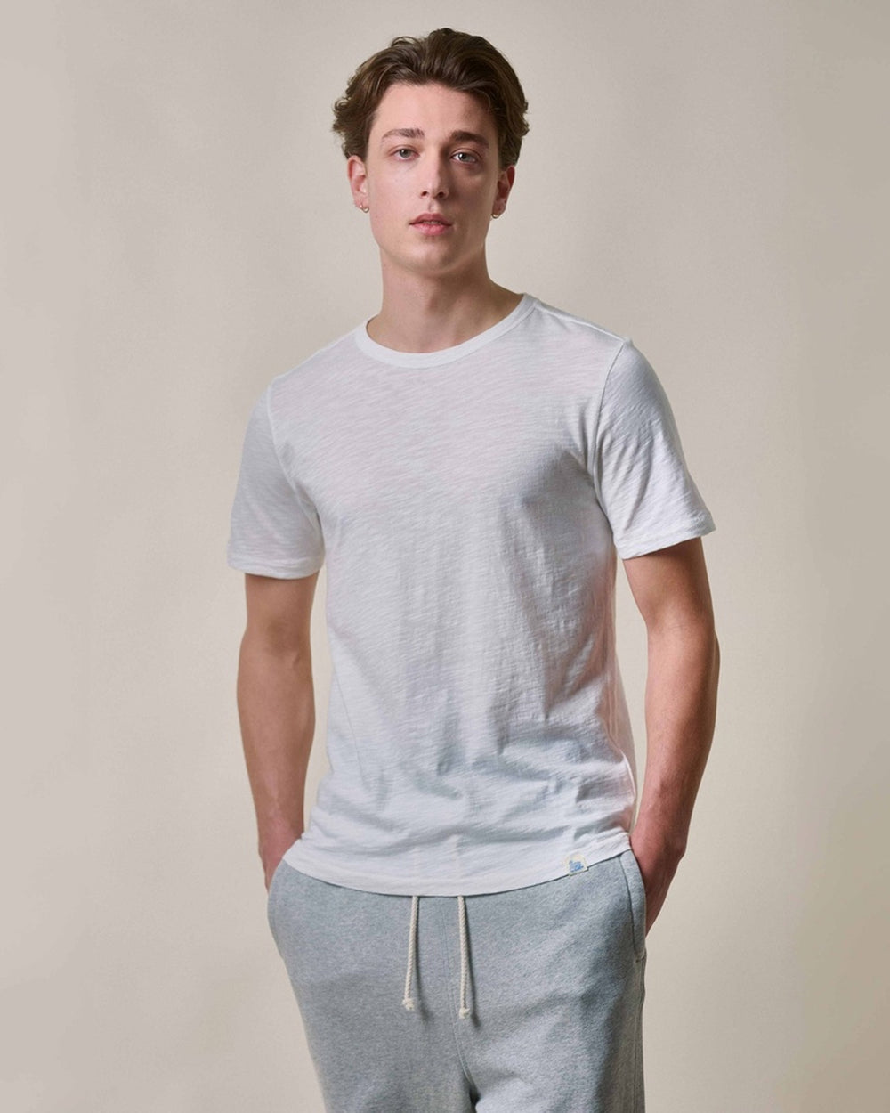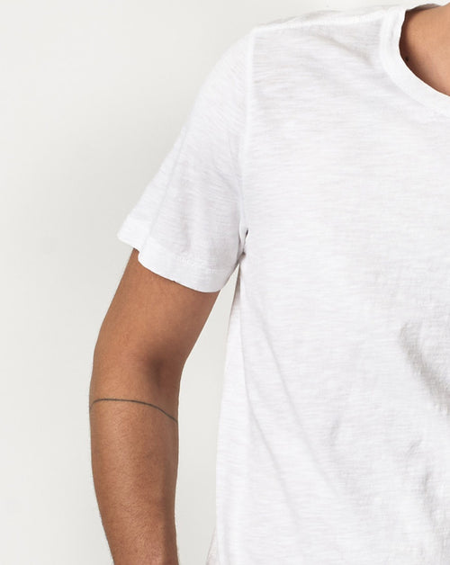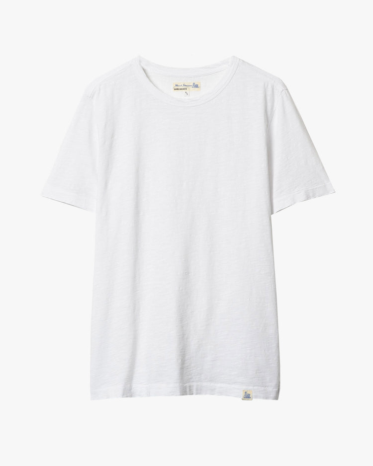 Relaxed fit t-shirt, cut from a pima cotton, light slub jersey. Featuring a classic crew neckline, triangle inserts under the arm, swan loop label and a seamless body. Constructed on original circular loop wheeler.