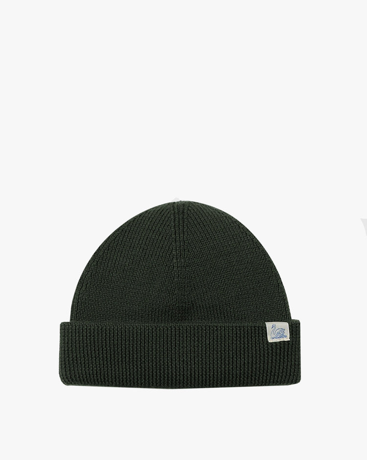 Classic fit beanie, knitted from a soft ribbed Merino Wool. Featuring a ribbed turnover, and Merz B. Schwanen swan loop logo label.