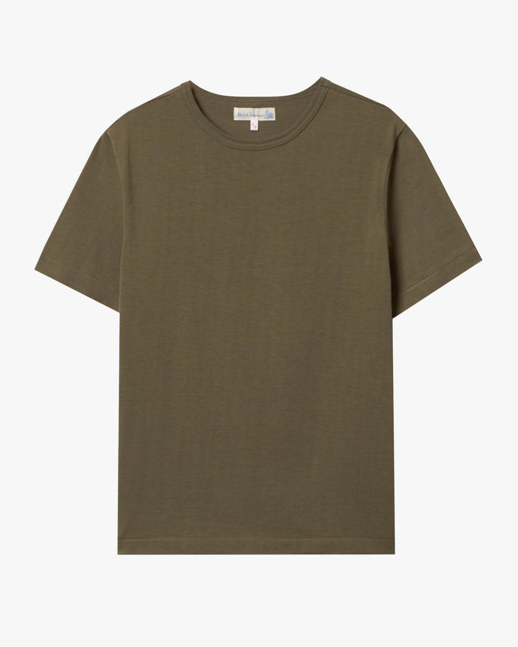 Slim fit t-shirt, cut from a heavyweight Organic Cotton. Featuring a classic crew neckline and seamless body. These T-shirts are constructed on original circular knitting machines known as loop wheelers. This creates a fabric with no tension, twisting or loosing shape. Sizing up is recommended for the classic fit styles.