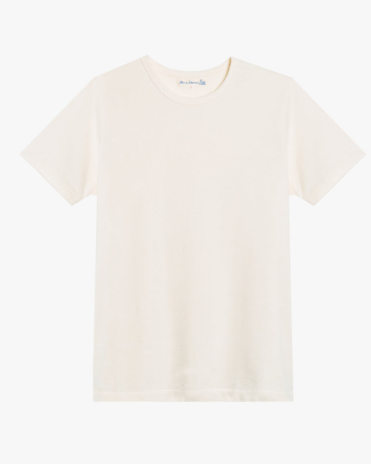 Slim fit t-shirt, cut from a heavyweight Organic Cotton. Featuring a classic crew neckline and seamless body. These T-shirts are constructed on original circular knitting machines known as loop wheelers. This creates a fabric with no tension, twisting or loosing shape. Sizing up is recommended for the classic fit styles.