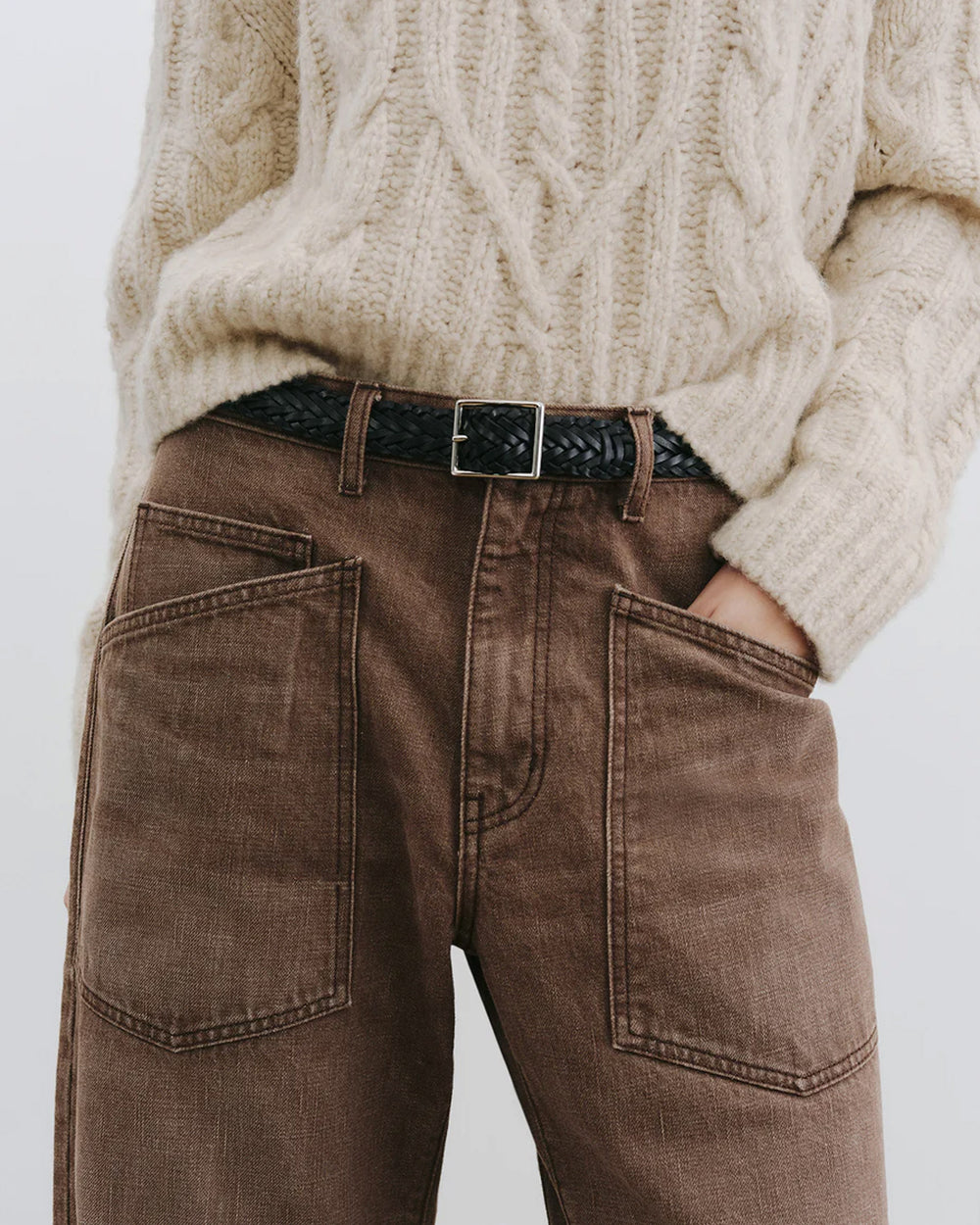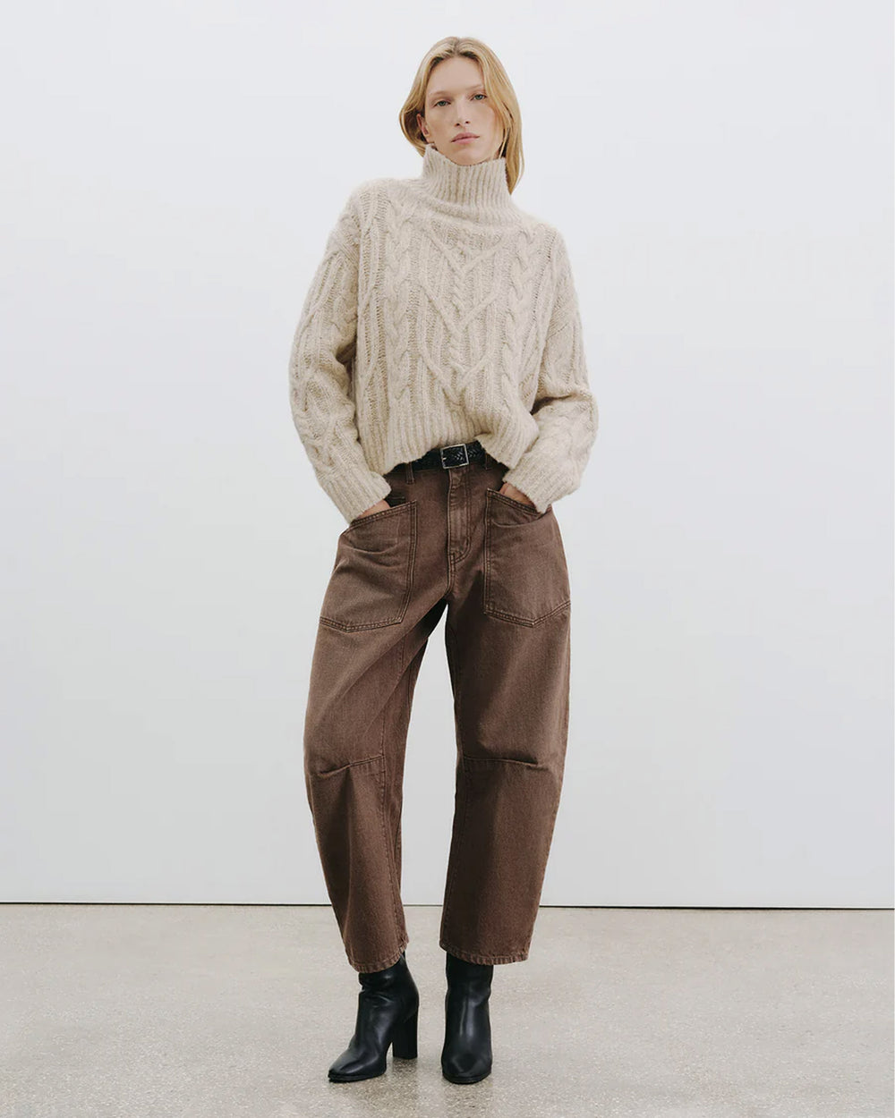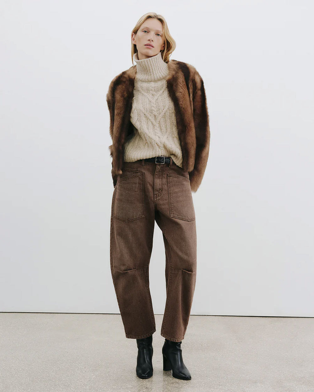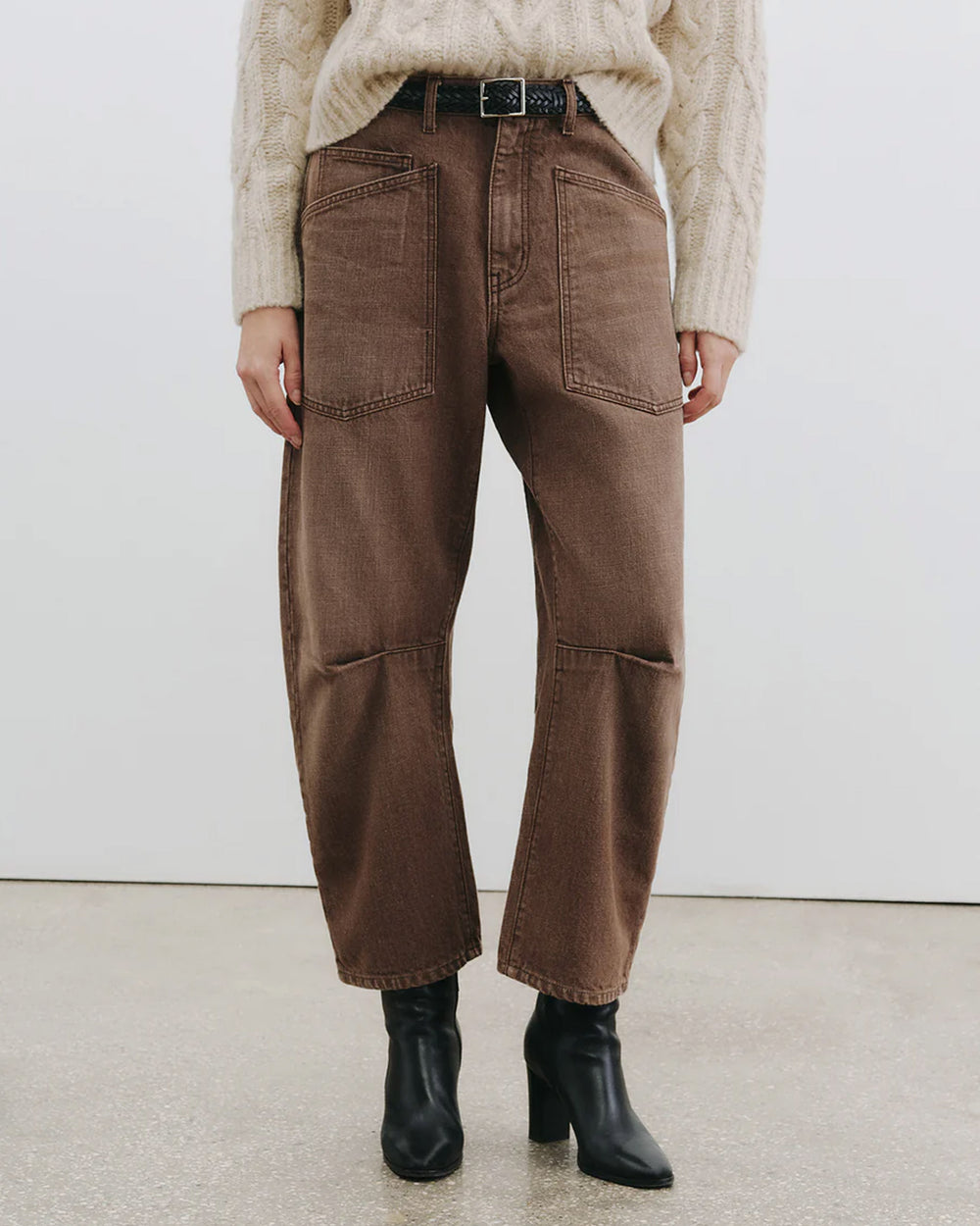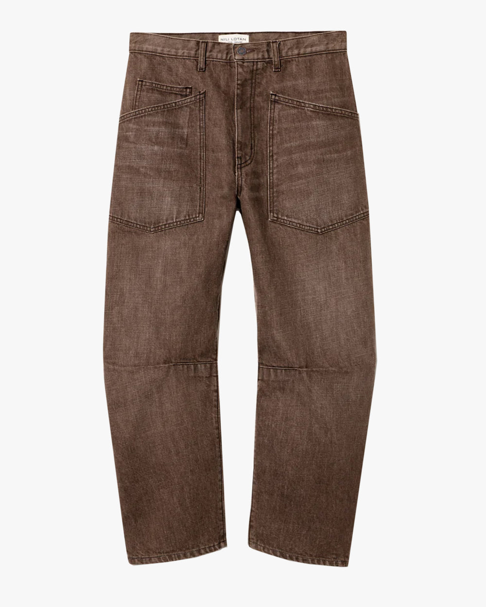 A mid-rise bow-leg jean born from vintage workwear and reimagined in premium Japanese stretch denim. The Shon is cut with relaxed ease through the leg, shaped by a curved inseam and articulated seam detail at the knees—balancing structure with fluidity for a silhouette that is utilitarian, sexy, easy, and transformative.