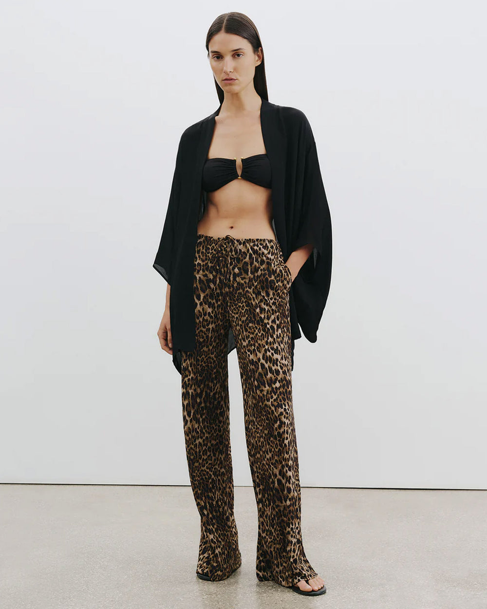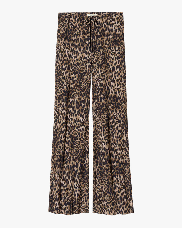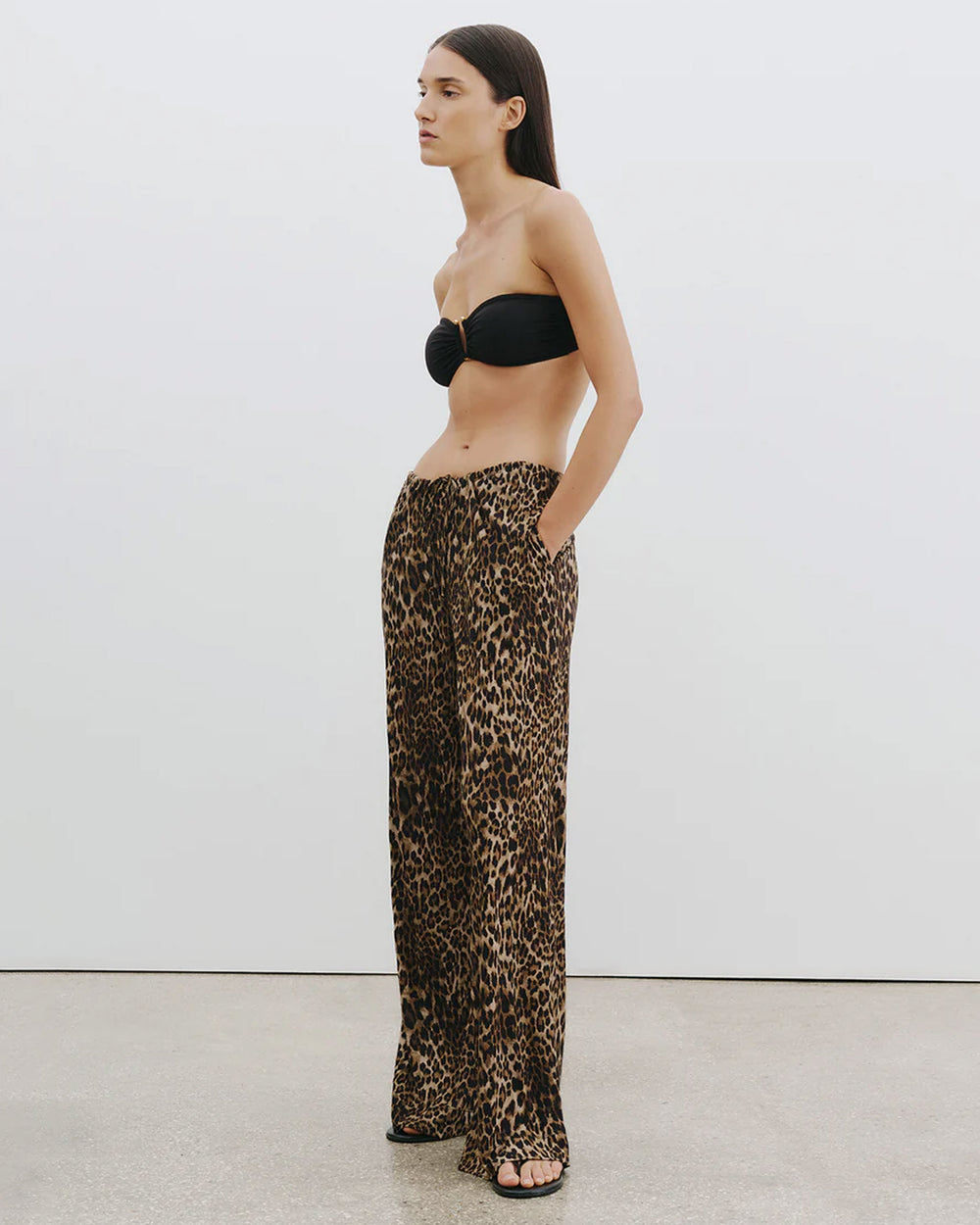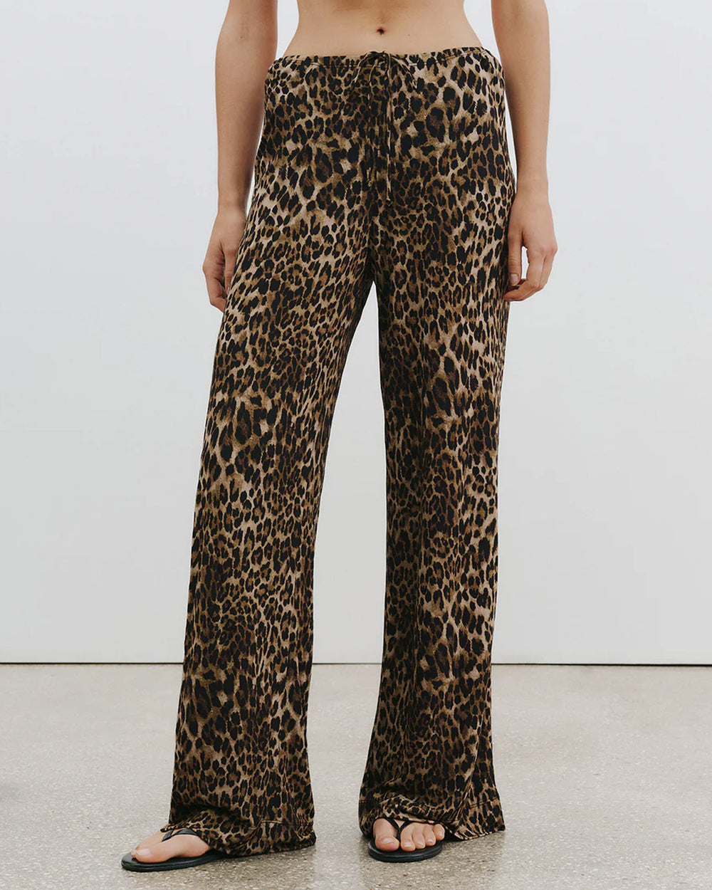 Relaxed fit trouser, cut from a leopard printed viscose. A wide leg silhouette, featuring a drawstring and side pockets. The Adriel pant is perfect to throw on over swimwear for a relaxed summer look.