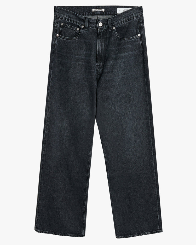 Relaxed fit jeans, cut from a supergrey wash Italian cotton denim. Featuring a wide-straight leg, zip fly, classic five pocket detailing, and finished with an embossed Our Legacy patch on back waistband.