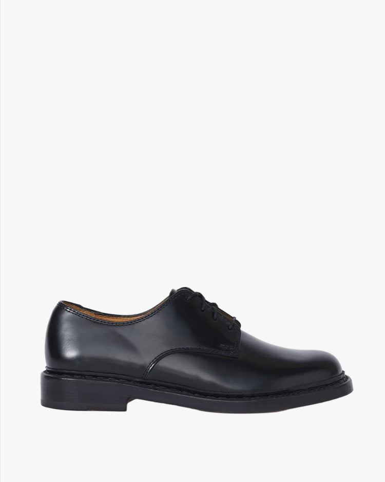 Crafted from a Italian leather. Featuring a Norwegian welted leather outsole, four eyelets and a stacked heel.