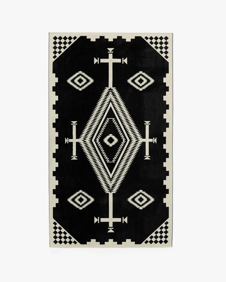 Oversized beach towel, made from an extra-plush terry velour toweling. Featuring Featuring all-over jacquard print, a velvet side and a looped side for absorbency. Thick and Luxurious, perfect for the beach, pool, or hot tub.