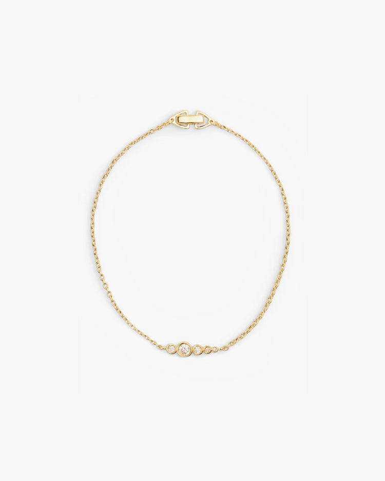 Delicate bracelet, crafted from 18k gold plated sterling silver. Detailed in a cluster of seven bezel set gemstones in various sizes, adding a sparkle to your wrist