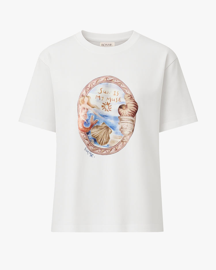 Relaxed fit t-shirt, cut from a heavyweight cotton jersey. A boxy silhouette, featuring a crew neckline, drop shoulder, short sleeves and a large exclusive Oracle graphic on the front reading 'sun is my muse'.