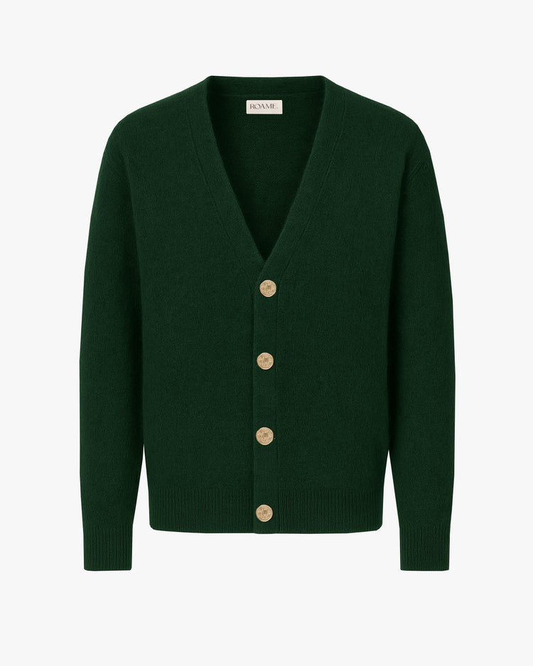 Oversized fit cardigan, knitted from a chunky Alpaca blend yarn. Featuring a deep V neckline, dropped shoulders, four button closure and with ribbed neckline, cuffs and hem.