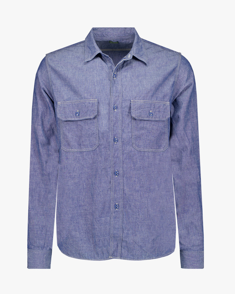 Standard fit shirt, cut from a premium Japanese indigo denim. Featuring Spellbound's signature contrast stitching and buttoned flap pockets at chest. Ideal with a pair of tailored chinos.