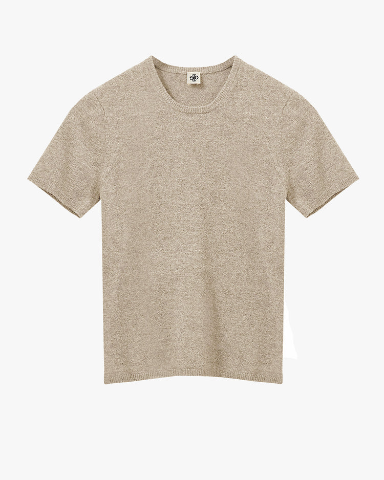 Slim fitting top, knitted from a wool cashmere blend. A T-shirt silhouette, featuring a crew neckline, short sleeves, and ribbed neckline, cuffs and hem. Finished with 'The Garment' logo embroidered at hem.