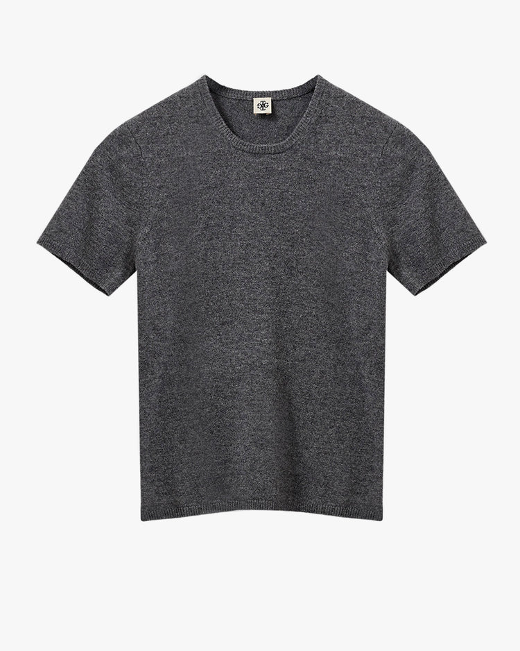 Slim fitting top, knitted from a wool cashmere blend. A T-shirt silhouette, featuring a crew neckline, short sleeves, and ribbed neckline, cuffs and hem. Finished with 'The Garment' logo embroidered at hem.