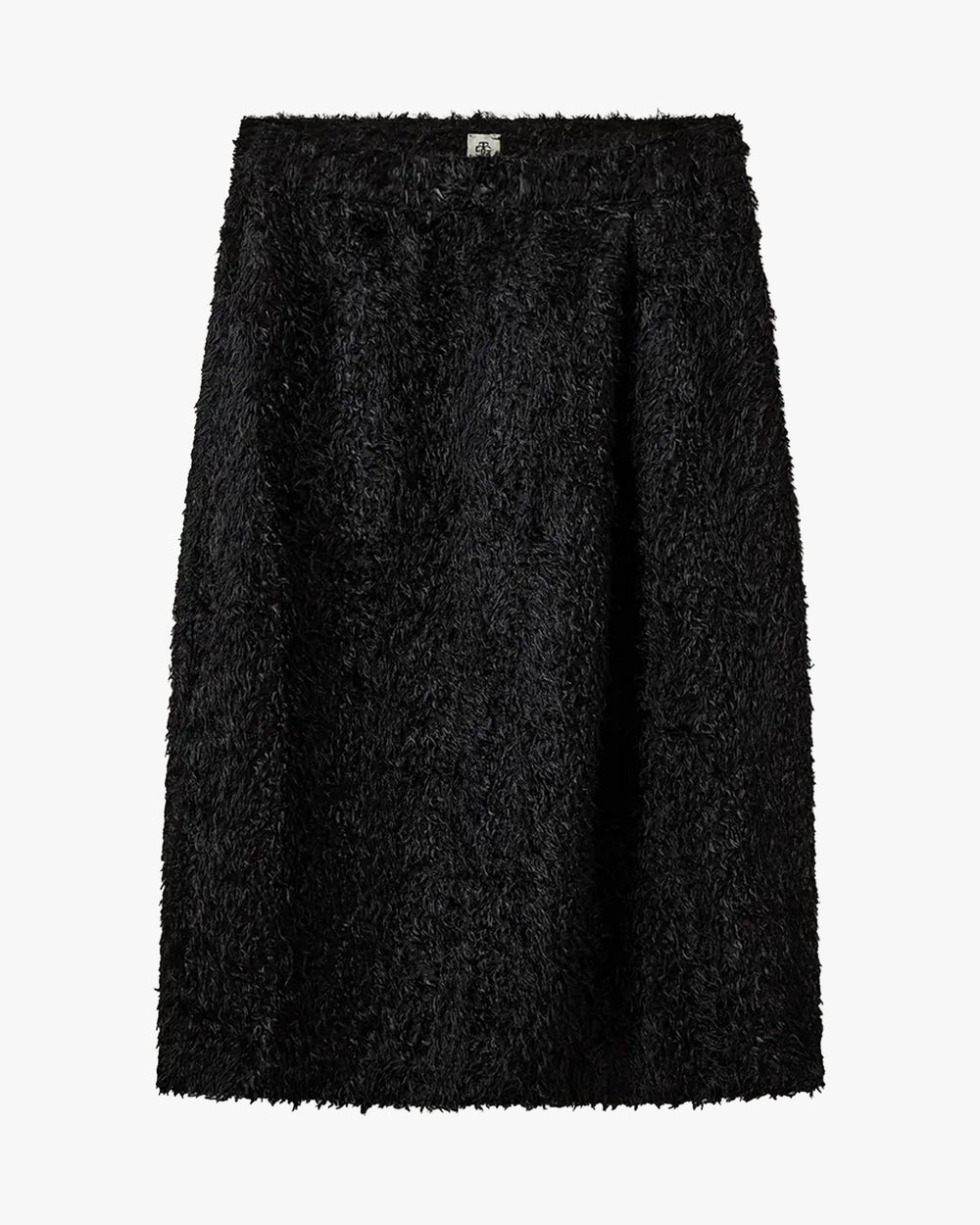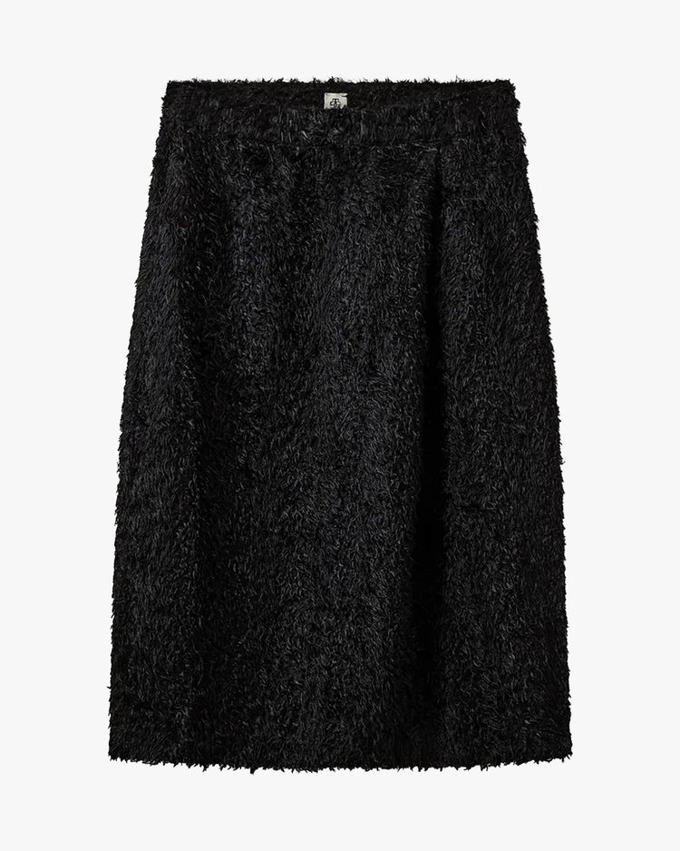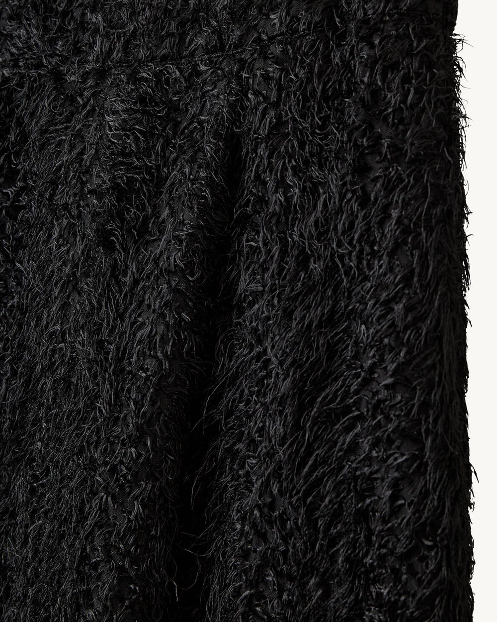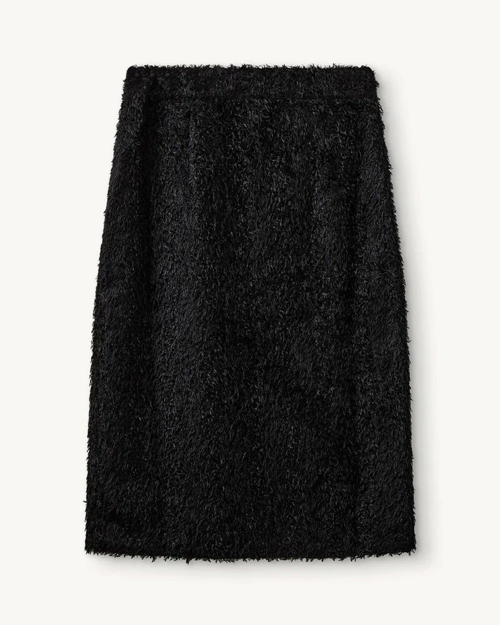 The Lela skirt is a midi-length design adorned with delicate fringe detailing. It's soft movement and clean lines offer a refined yet playful take on a classic wardrobe staple.