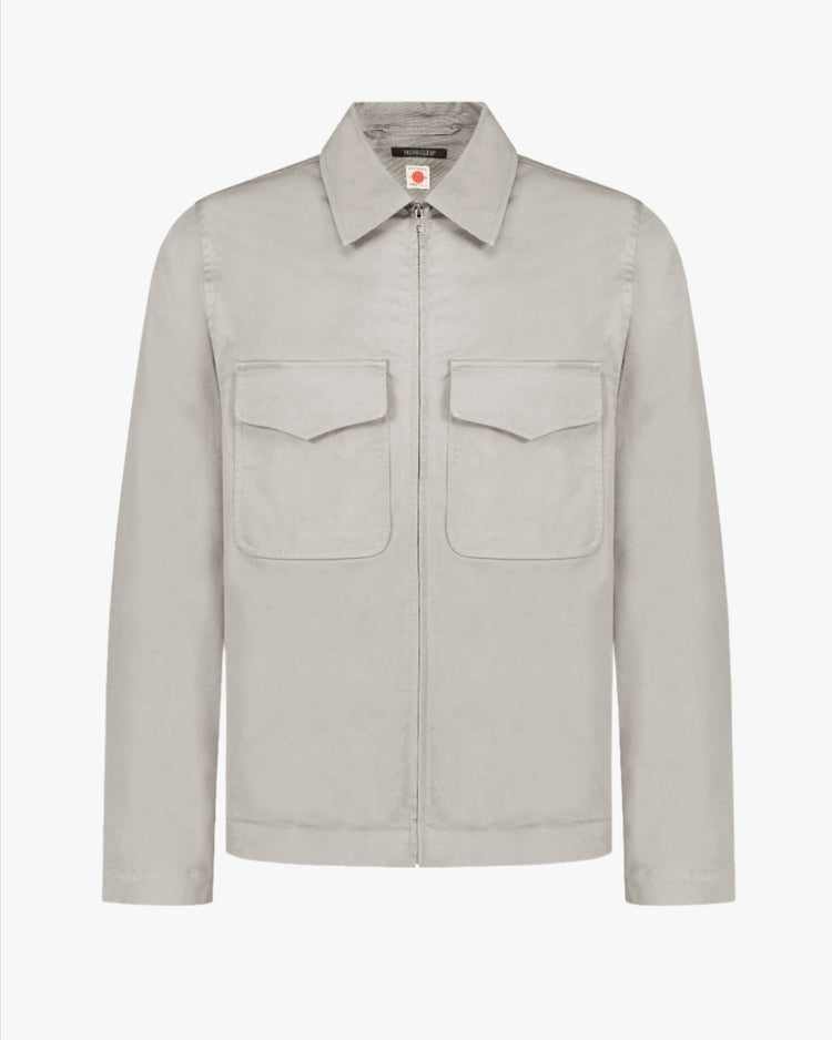 Classic zip front trucker jacket. Slim fit, cut from a Japanese Compact Stretch Chino. Featuring double flap patch pockets and classic top-stitched collar. Ideal with the Workshop Denim Slim Fit 5 Pocket Stretch Chino or dark indigo denim.