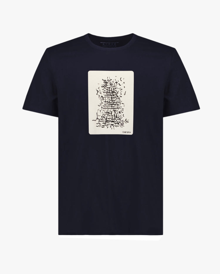 A core Workshop Denim style. Standard fit T-Shirt cut from superfine cotton jersey. Featuring a bound crew neckline, short sleeves and a straight hem. Enzyme washed to achieve a soft lived in hand feel. Featuring exclusive "Toot" print by New Zealand Martin Poppelwell.